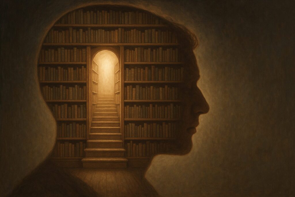A prateleira da consciência não é estática: a cada experiência, novos livros surgem. Alguns são lições que já podemos arquivar; outros são sementes de mundos ainda por manifestar.