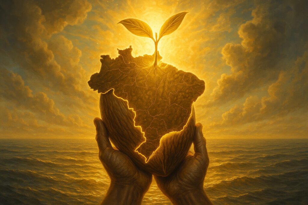 O Brasil é mais do que um país de dimensões continentais. É um campo vibratório singular, onde a diversidade, a natureza exuberante e a criatividade do povo expressam um potencial de liderança para uma nova era. O Oceano Dourado, como teoria e prática, encontra no solo brasileiro o terreno fértil para florescer como modelo de crescimento exponencial, sustentável e espiritualizado